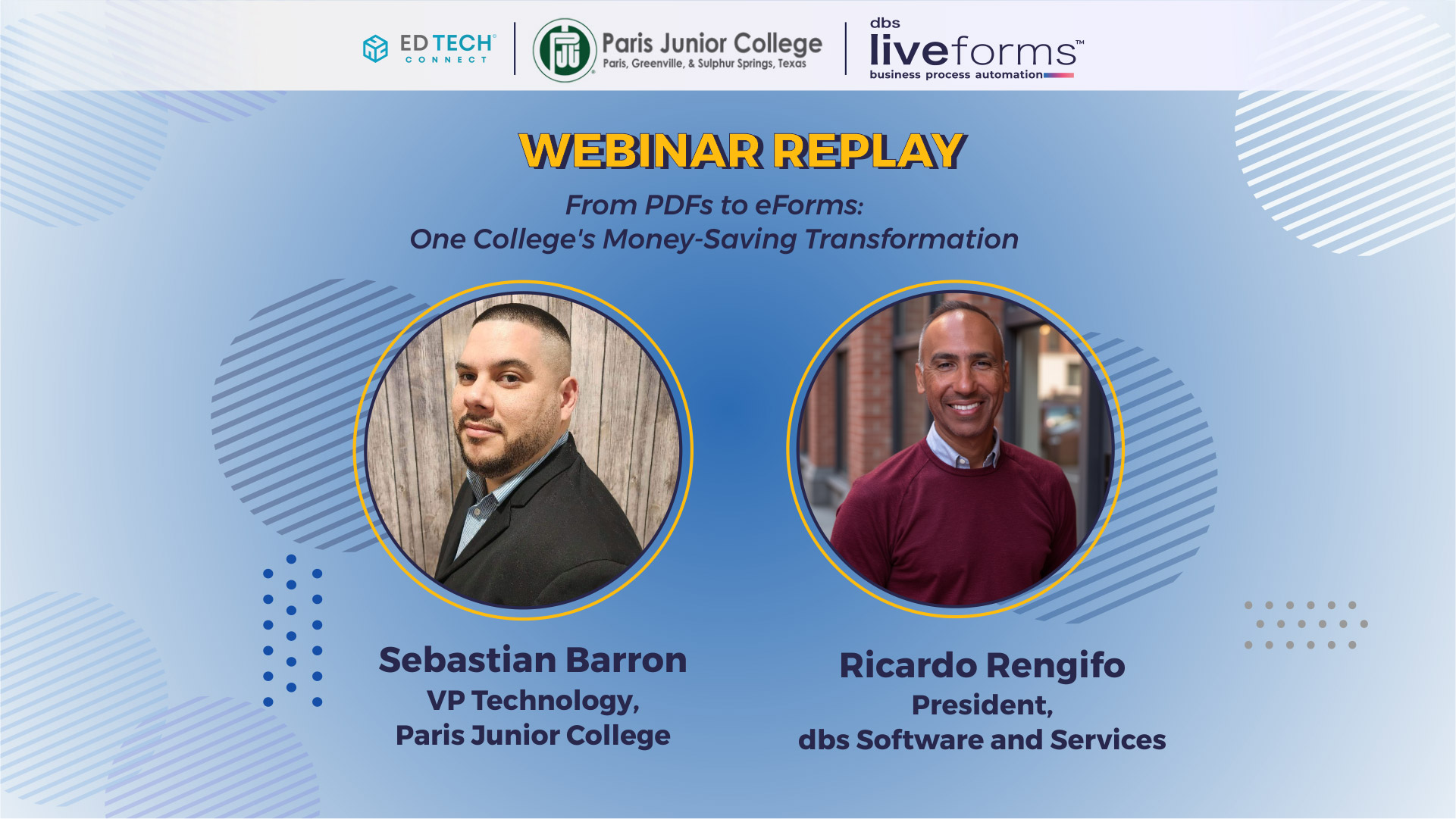 Also hear Paris Junior College’s VP of Technology, Sebastian Barron, talk about his experience transforming manual workflows into digital ones with Liveforms in this webinar.